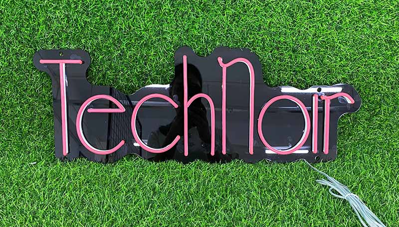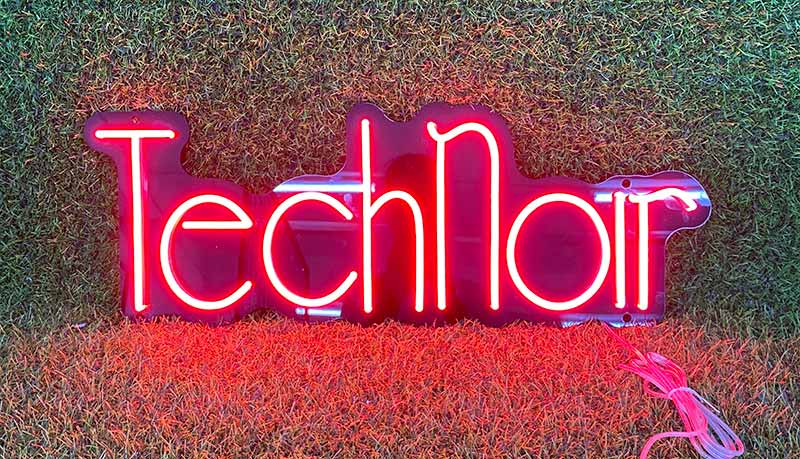 This is an order page for a custom "TechNoir" neon sign like the first product image shown on this page. The sign will come fully assembled, ready to plug in and turn on.