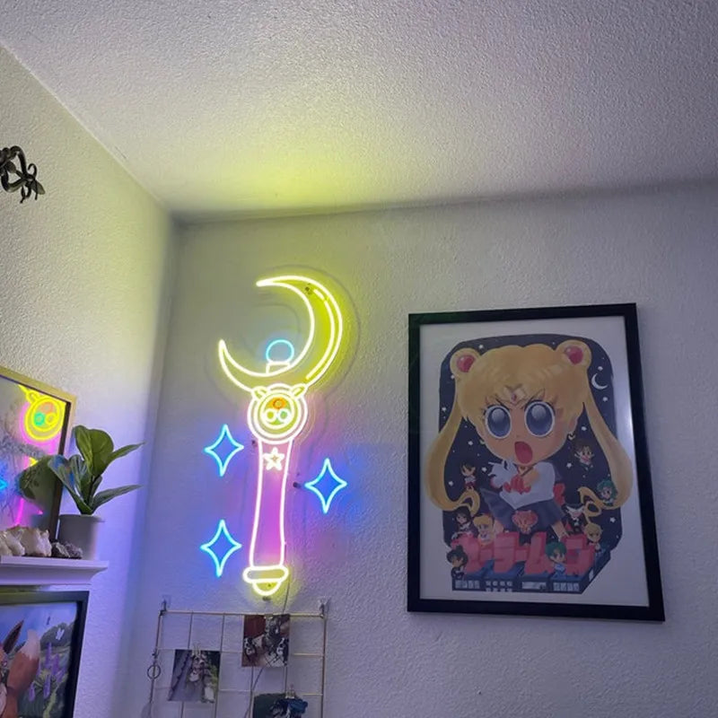 The Sailor Moon Magic Stick Neon Sign is a dreamy and enchanting addition for fans of the iconic series and those who love whimsical decor. This sign beautifully recreates the famous Magic Stick from Sailor Moon in vibrant neon colors, bringing a touch of magical girl charm to any space. It's made with high-quality, energy-efficient LED neon, ensuring a bright and lasting glow that captivates and delights. Perfect for a themed room, anime collection display, or as a standout piece in any setting, this neon sign is a spellbinding blend of nostalgia and contemporary style.