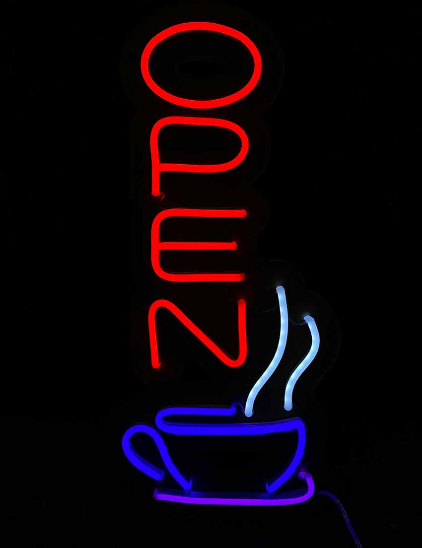 We can even customize this coffee shop neon open sign adding your restaurant name, coffee shop name or customizing the colors. Contact us if you would like customizations.