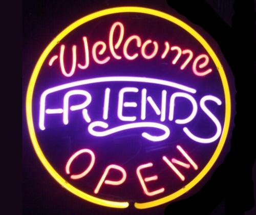 Our "Welcome Friends" neon open sign is vibrant and inviting. The neon illuminates 3 different colors and the circle design is perfect for windows or doors.