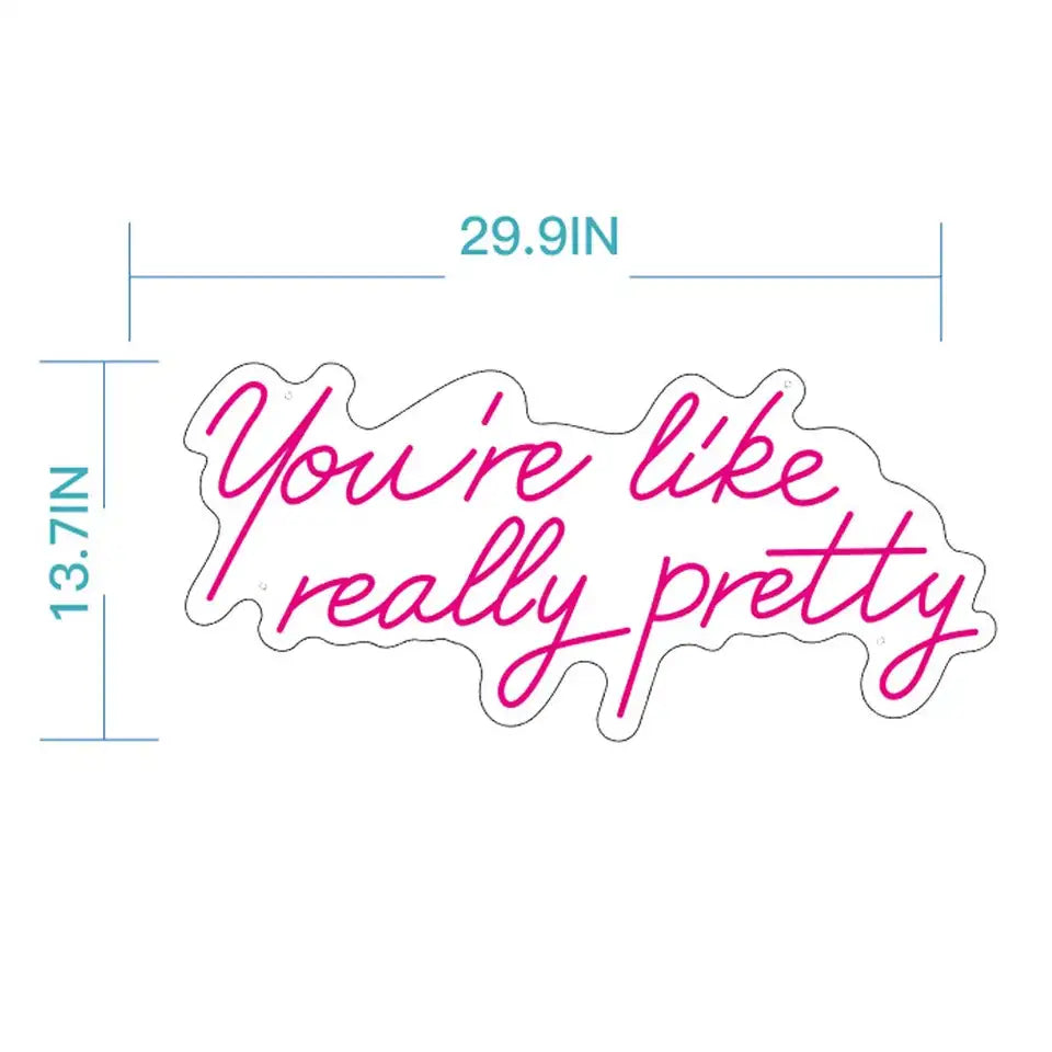 Do you know what movie this saying is from? If you remember the 90's Mean Girls flick, you will surely understand the appeal of this "You're Like Really Pretty Neon Sign". We offer 5 colors in this pre-designed design. If you would like a custom font used, want a different size or custom colors, please contact us and we would be happy to Assist. You can also use our word neon sign creator here if you would like to create your own custom You're Like Really Pretty Neon Sign.